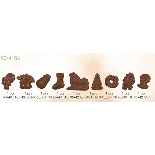 Kalup za čokoladu- Božićni ukrasi od termofirmirane plastike sa motivima bora, zvona, snješka, čarape, saonica, vijenca…