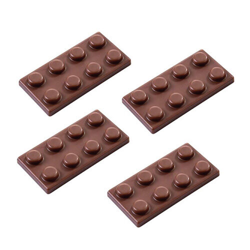 Kalup za čokoladu KOCKICA 3. Živahne čokoladne kreacijae dizajniranih za djecu, ali koje vole i pomalo odrasli. Pojedinačne dimenzije gotovog proizvoda su 45×23 h 6 mm. 20 kom. gotovog roizvoda.