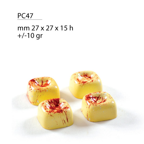 Veličina kalupa je 275 x 135 mm, dimenzija pojedinačne praline 27 x 27 x 15 H. Za 21 komad gotovog proizvoda.