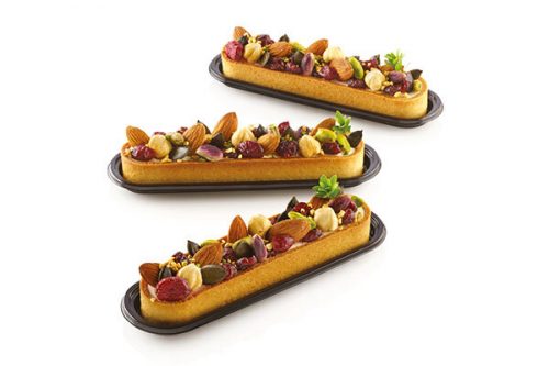 Tarte prsten duguljasti 146 x 34 h 20 mm od Silikomarta Professional sastoji se od šest kolutića od termoplastičnog kompozitnog materijala otpornog na savijanje pogodnog za pečenje i razvijen za izradu tarta od 146 x 34 h 20 mm.