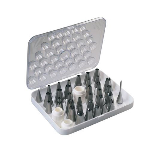 SET INOX NASTAVAKA ZA DRESIR VREĆICE 36 KOM od polikarbonata, za dekoriranje slastica. Koristite ih sa dresir vrećicama za jednokratnu upotrebu ili sa silikonskim dresir vrećicama za višekratnu upotrebu.