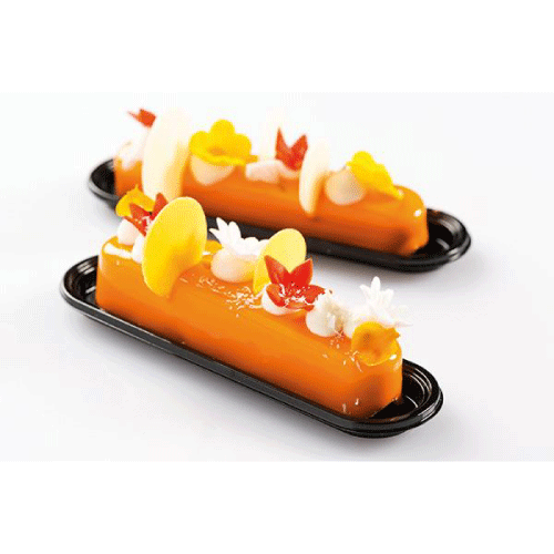 Bljesak okusa uljepšat će vašu slastičarnu. Klasični oblik tijesta revidiran prema modernom konceptu u kojem se kreativnost, svježina i estetski spoj zajedno stvaraju Fashion Eclair od Silikomart Professionala. Kalup s 10 šupljina po 80 ml za stvaranje profinjenih semifredda s različitim kombinacijama boja. U svakom pakiranju je uključeno deset malih ploča za savršenu konačnu prezentaciju i plastični rezač za izradu originalnih umetaka i/ili baza koje savršeno odgovaraju obliku kalupa.