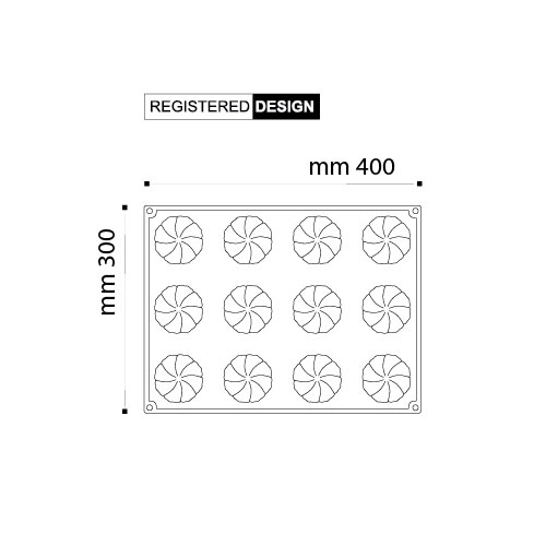 Vanjske dimenzije su 300 mm x 400 mm, a pojedinačne dimenzije gotovog proizvoda 66 mm i visine 35 mm. Volumen pojedinačnog gotovog proizvoda je cca 88 ml.