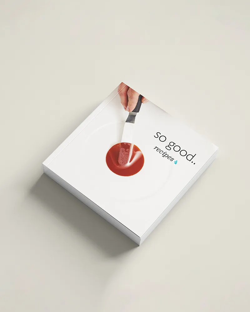 So Good RECIPES #4. Kao što je do sada bio običaj, svakih osam brojeva časopisa So Good.. objavljujemo kompilaciju svih recepata objavljenih u tim brojevima, klasificiranih po tematskim obiteljima (moussevi s moussevima, želei sa želeima i biskvitni kolači s biskvitnim kolačima).