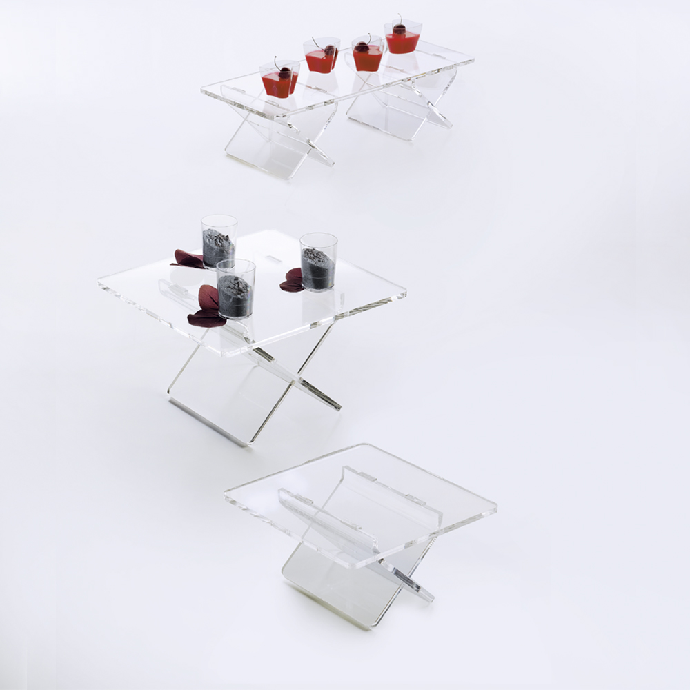 STALAK ZA FINGERFOOD CROSS SMALL. Stalak od pleksiglasa za kolače i finger food. Moderni modularni zaslon dizajniran za stvaranje originalnih koreografskih efekata, u potpunosti proizveden u Italiji. Idealno za postavljanje profinjenih švedskih stolova za ceremonije i poslovne sastanke ili jednostavno za izlaganje vaših kreacija unutar vašeg prostora.Stalak za tortu je otporan i jednostavan za sastavljanje i transport, potpuno neotrovan.